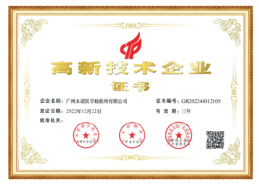 自成立以來,公司已公開申請專利66項,其中有57項已授權,廣東省名優高新技術產品2項。憑借強大的研發實力和創新能力,永諾生物成功入選大灣區生物科技創新企業50強、國家高新技術企業、廣州市科技創新小巨人企業、廣東省高新技術企業培育庫入庫企業、廣州市企業研發機構等榮譽。2023年永諾生物榮登首屆廣州百家新銳企業"銳100"名單;2024年公司榮獲"廣東省專精特新中小企業"稱號。